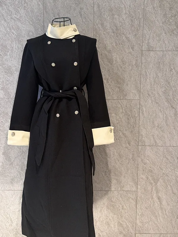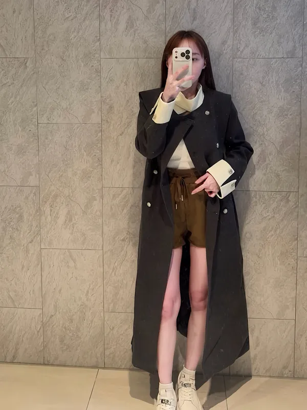 拼皮質感長版大衣