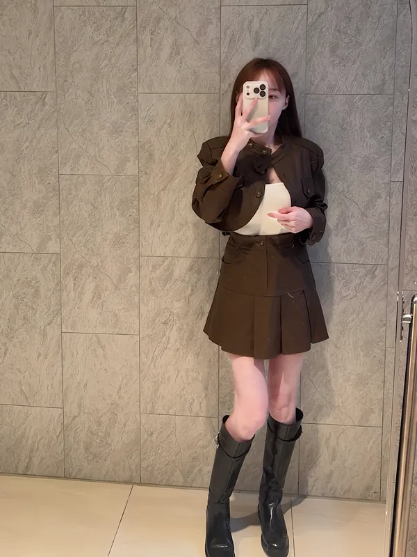 質感皮外套+短裙SET
