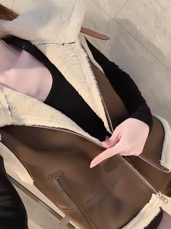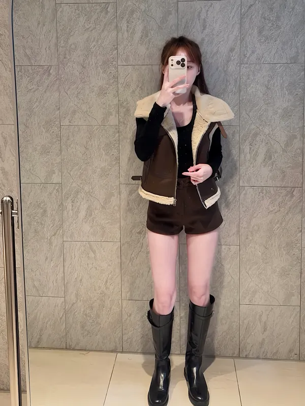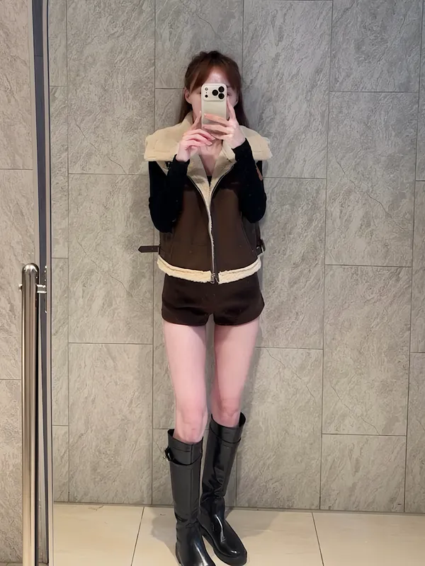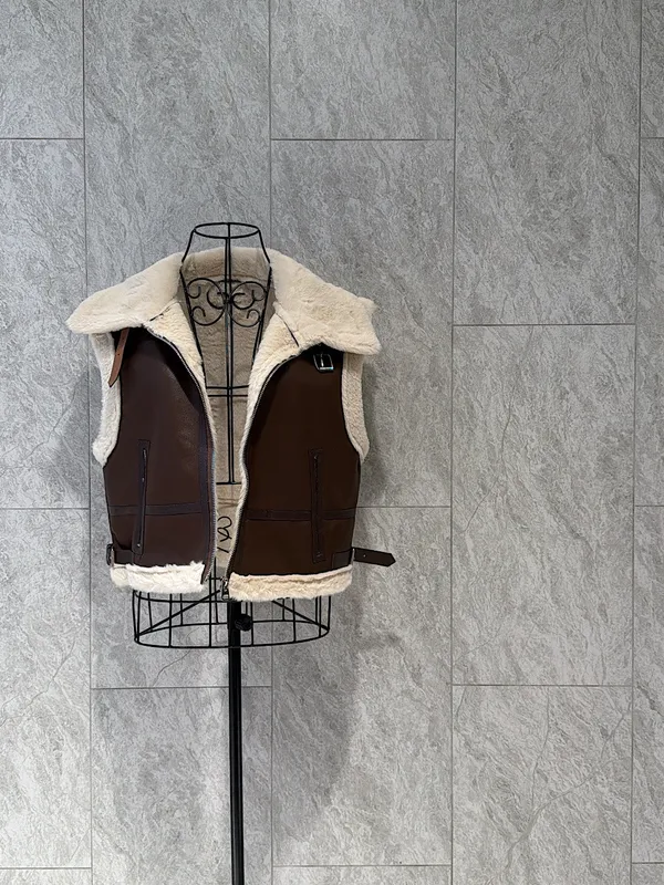 毛毛拼皮背心