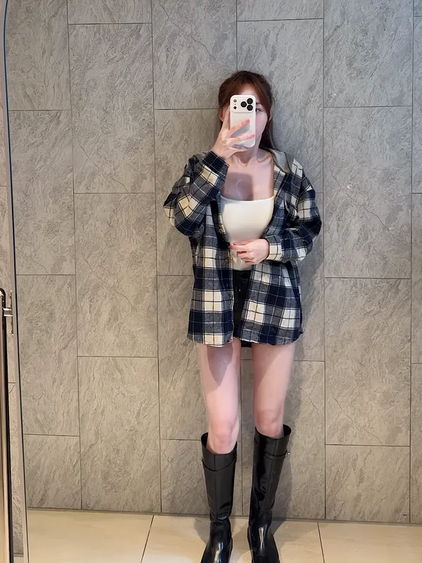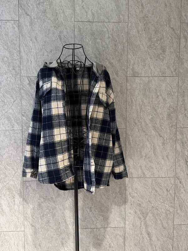 慵懶隨性格紋連帽襯外