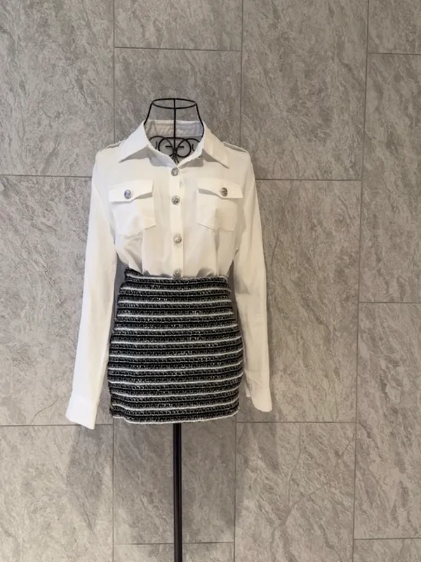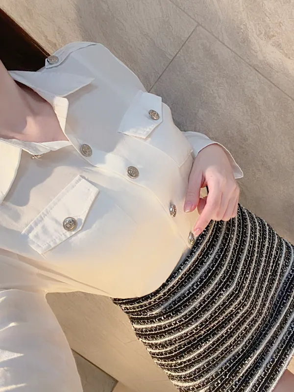鈕釦襯+包臀裙set