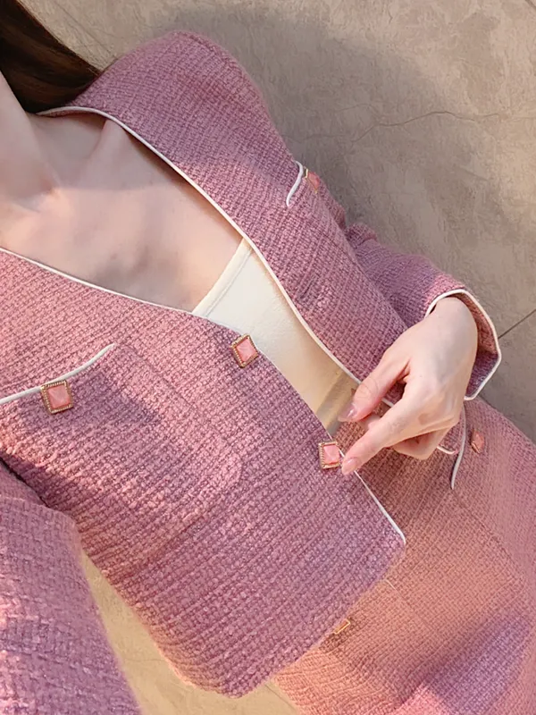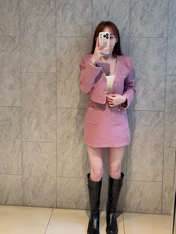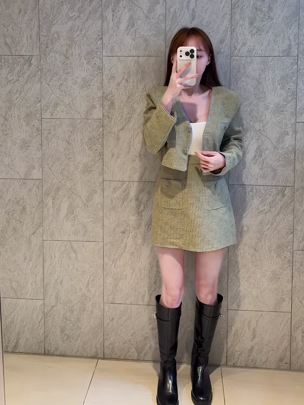 寶石紋感氣質外套+短裙