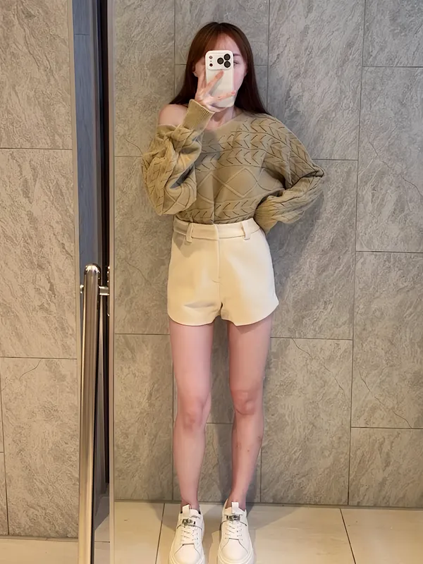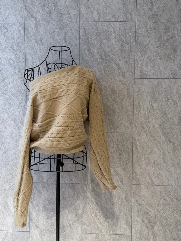 紋感斜肩針織衣