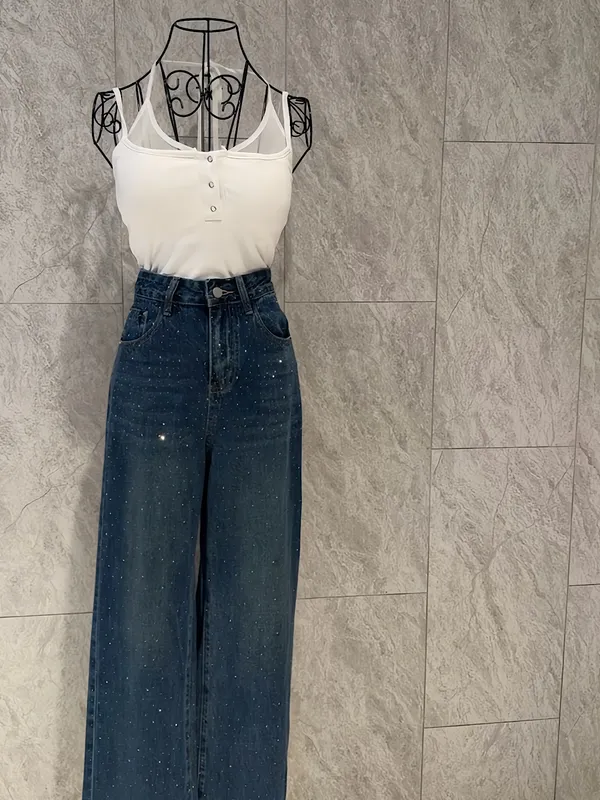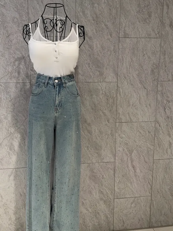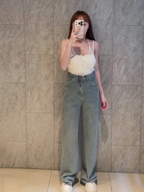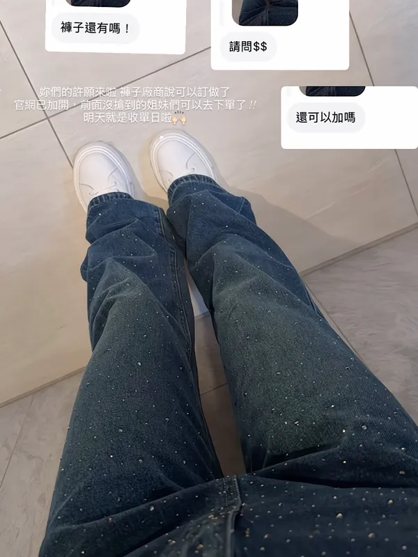必buy燙鑽牛仔直筒褲