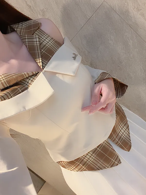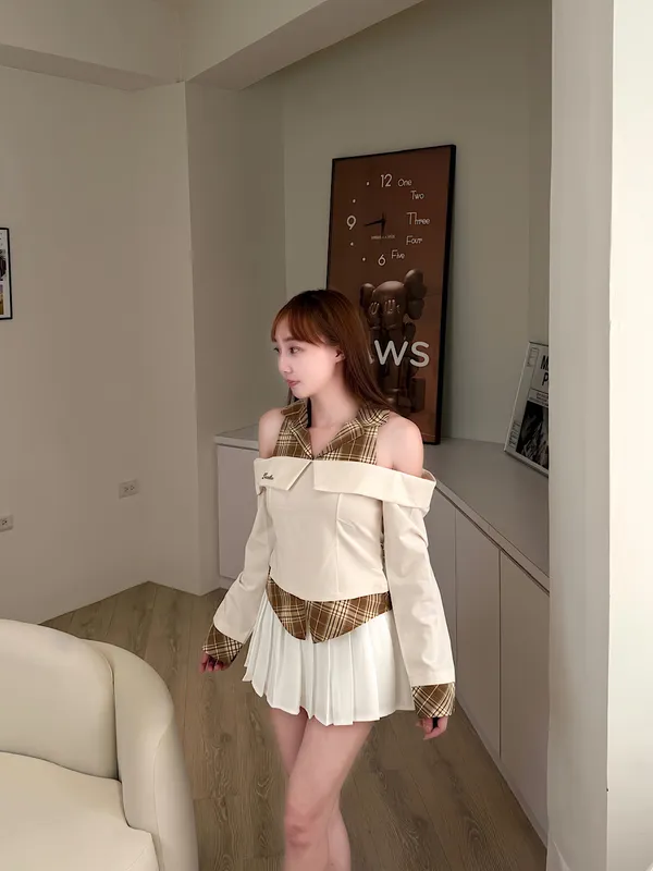 減齡拼接襯+百褶裙set
