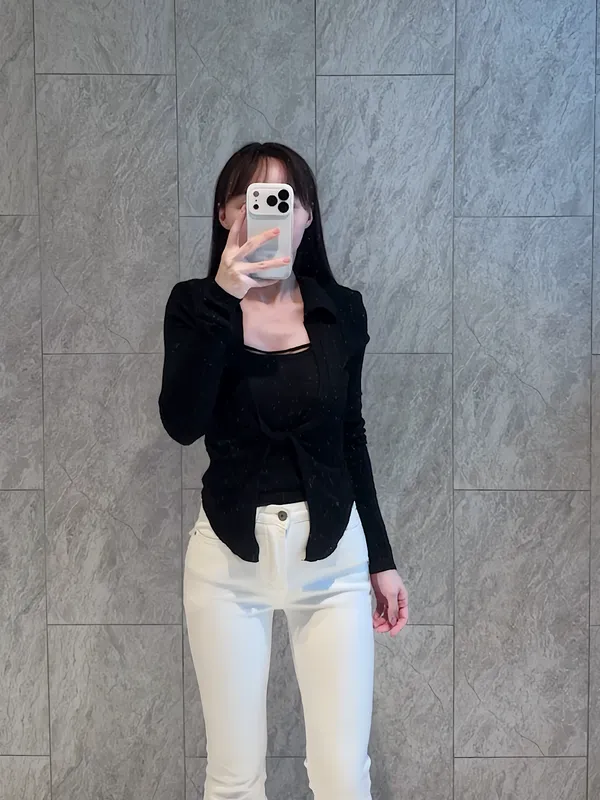 扭結造型假兩件上衣
