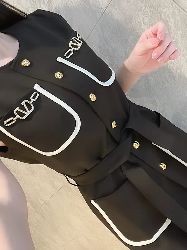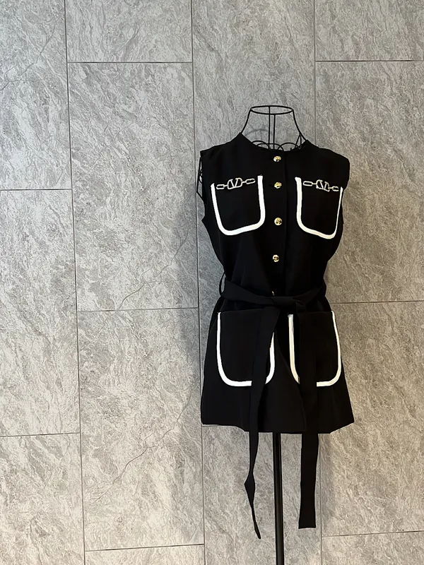 V釦法式滾邊綁帶背心