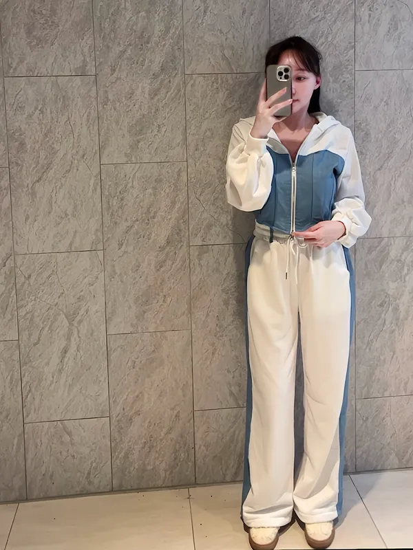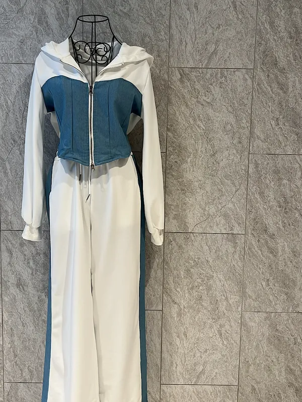韓國拼接牛仔套裝