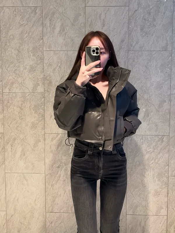質感皮短版麵包外套