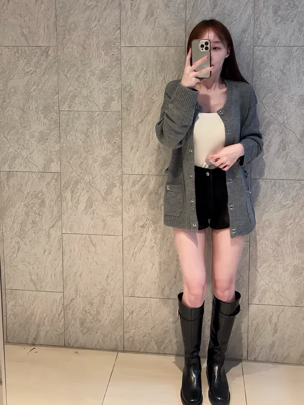 香香銀釦中長版外套