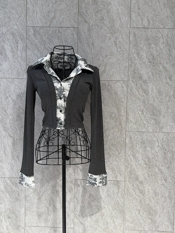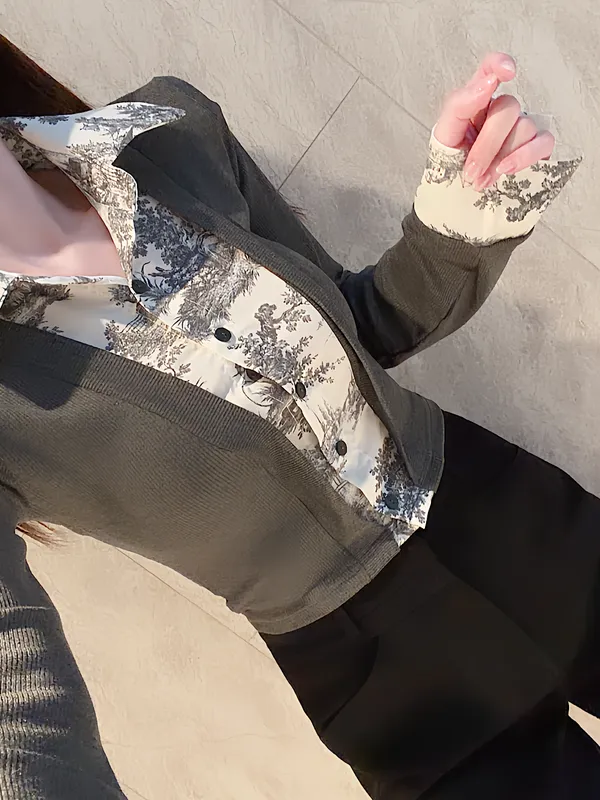 歐膩質感墨紋拼接襯衣