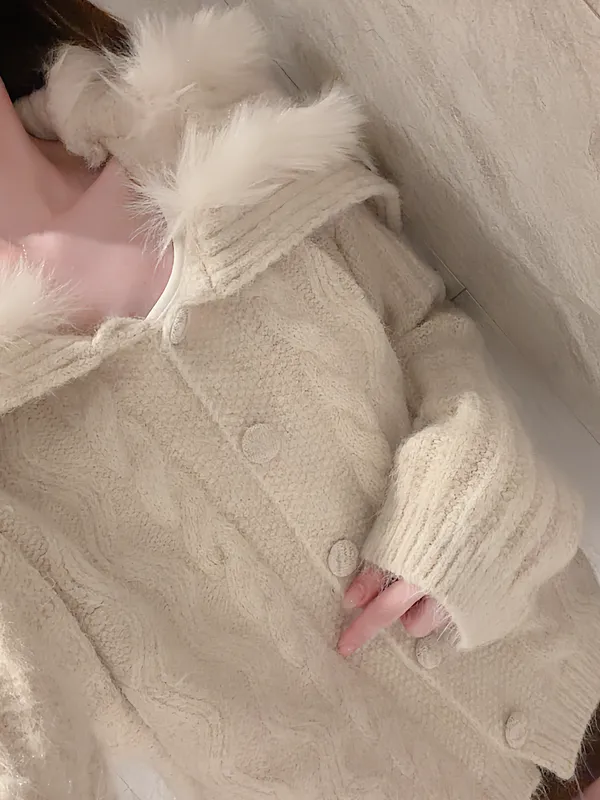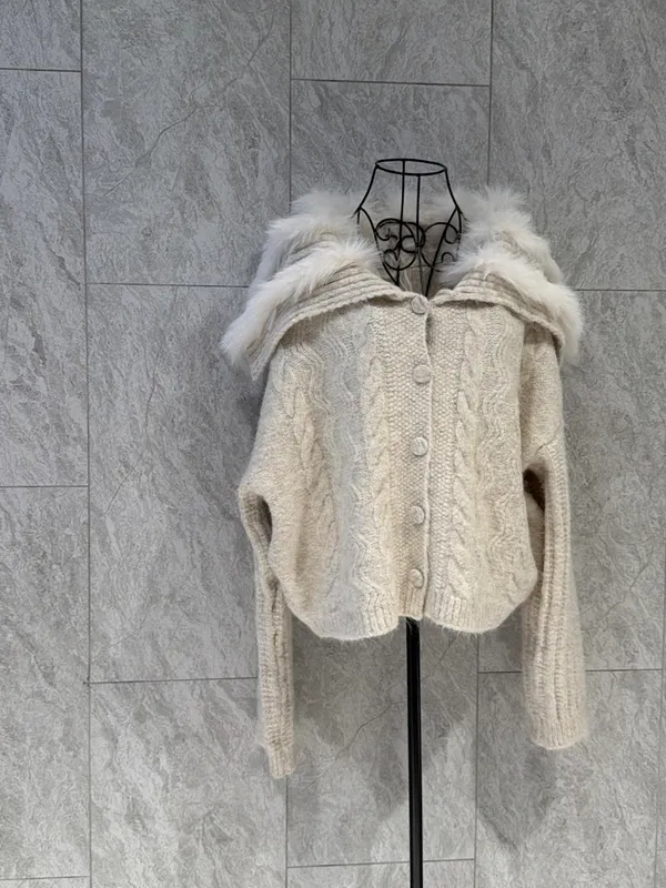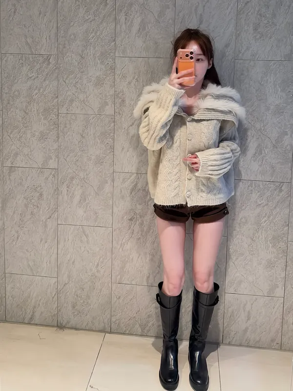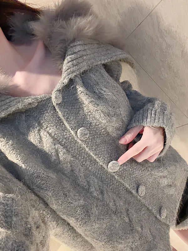 大翻領拼毛柔軟針織外套
