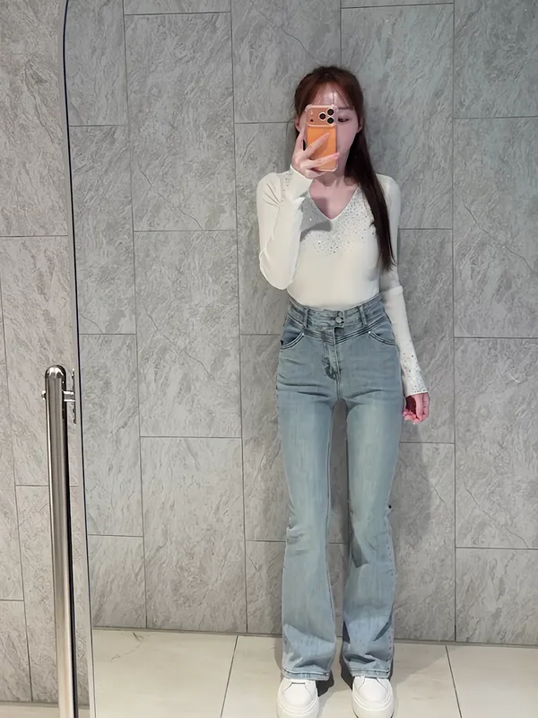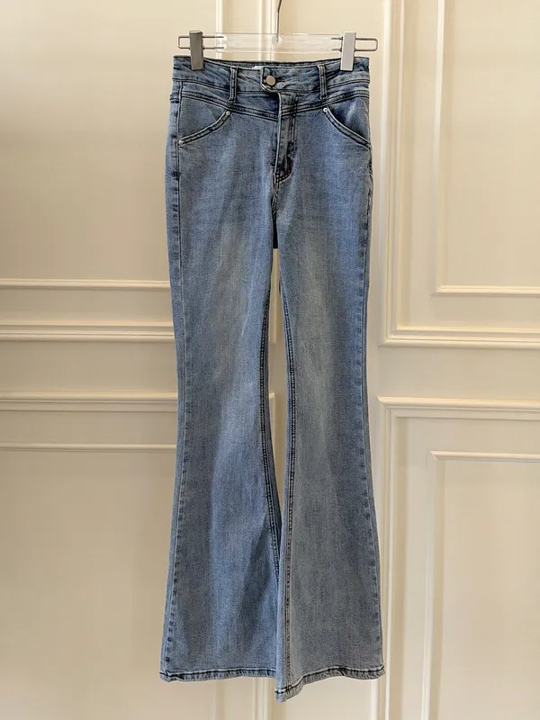 單釦造型淺藍牛仔褲