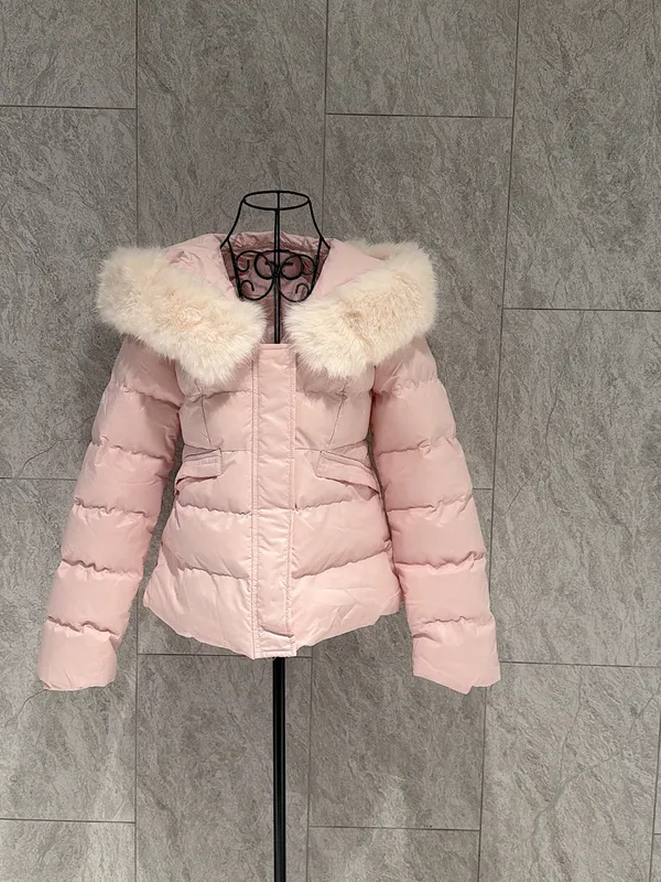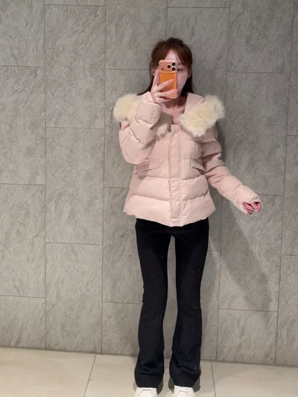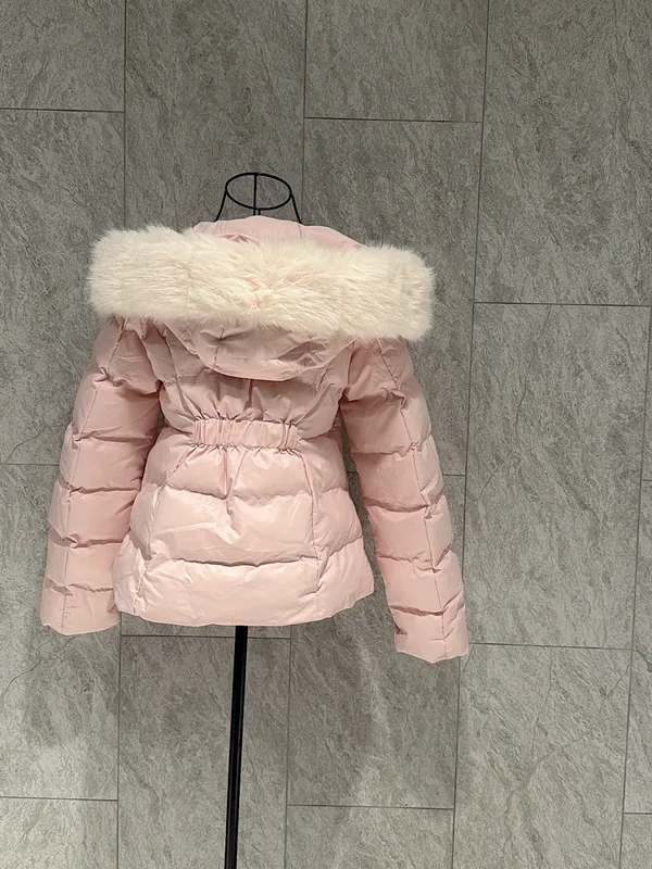 毛領連帽收腰鋪棉外套